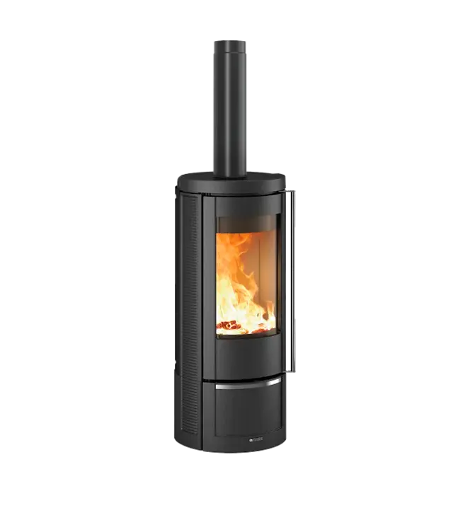 Marlena è la stufa a legna costruita interamente in ghisa ad alto rendimento termico, che si distingue per la sua elegante forma rotonda e per la grande porta fuoco con vetro curvo: una soluzione estetica ma anche pratica, capace di adattarsi a diverse esigenze di spazio.